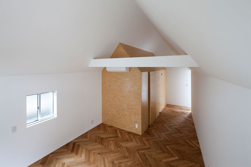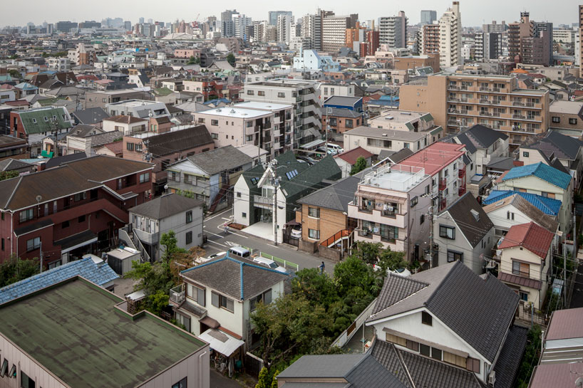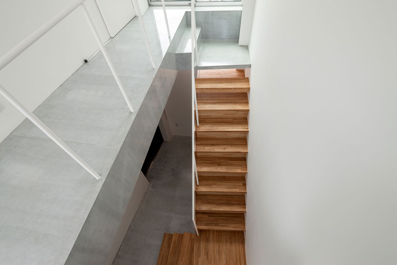 項目位于東京一處不規則的住宅區內,starpilots事務所設計的這處“housecut”,是一棟帶有他們個人辦公空間的家庭住宅。地塊位于街角的位置,不規則的形式拆分成了三個高大的結構,其中中間的體塊與兩側相比后退了一部分,形成了一處受庇護的門廊。將這棟建筑拆分成三個體塊是因為該地塊正處于城市道路建設規劃之中。因此,如果該規劃通過,其中一個體塊就會被拆掉。這三個體塊每個都有自己獨立的入口,同時結合整體規劃,該住宅也提供了該家庭殯葬公司的空間。