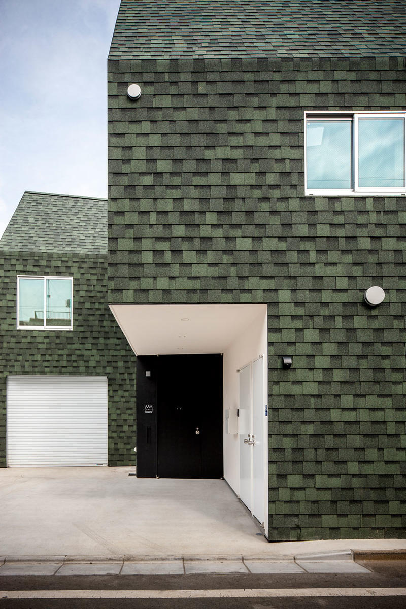 綠色屋面瓦覆蓋的日本“housecut”住宅
