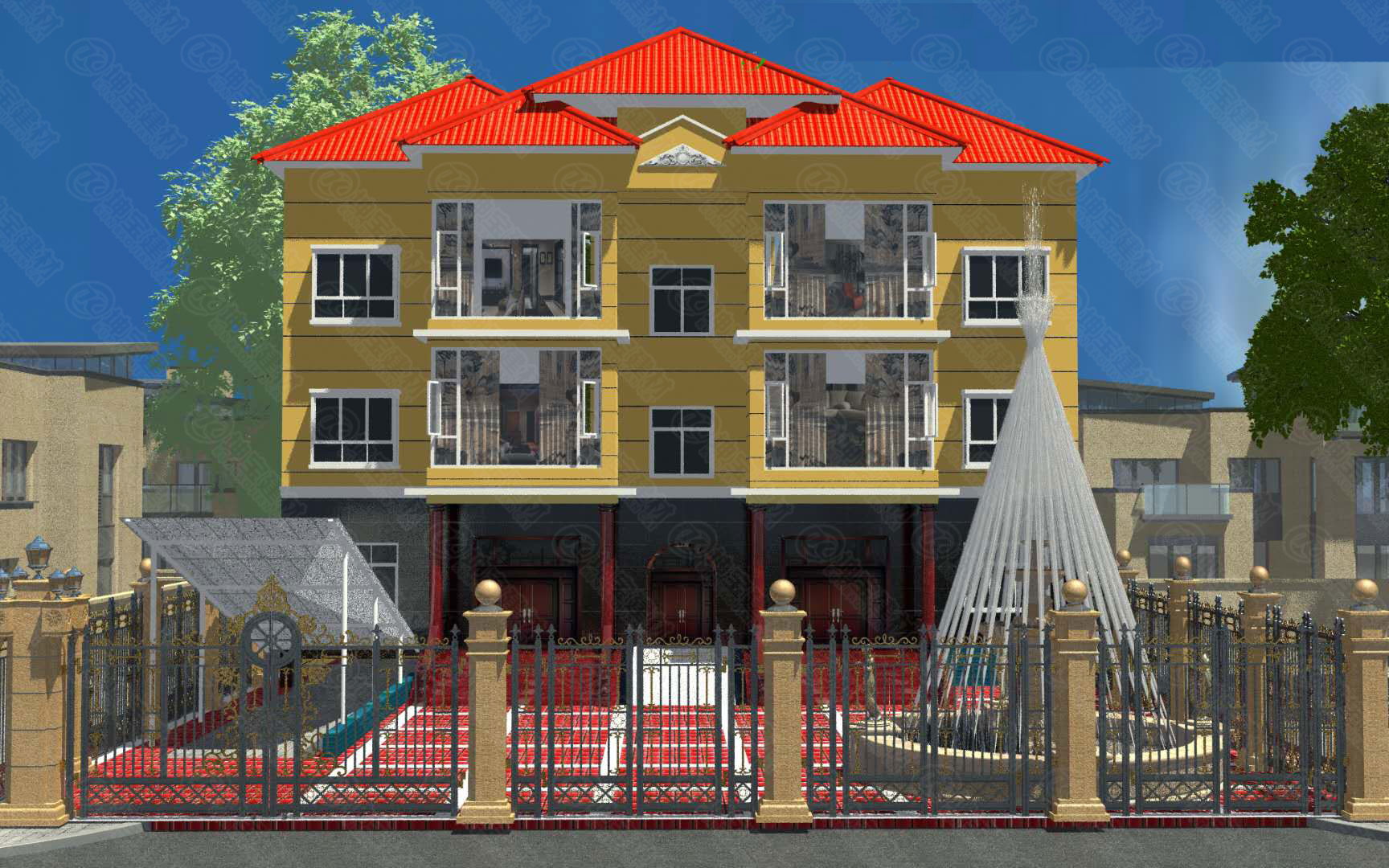 甘肅隴南的高老板為客戶用CAD軟件,設計的別墅屋面瓦整體效果圖