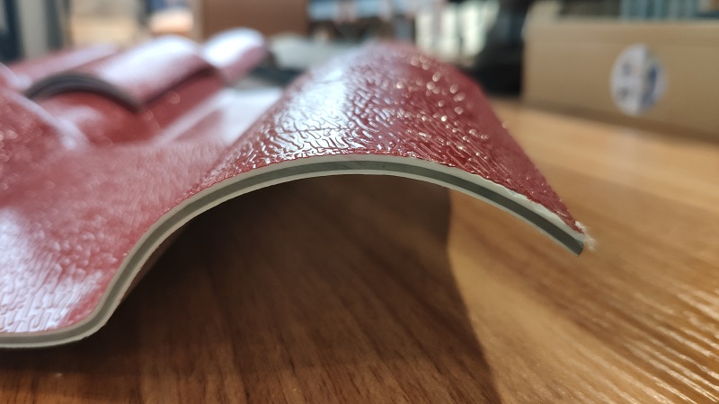 市面上看到的樹脂瓦,兩層白中間灰這種就是四層白底樹脂瓦,是2021年樹脂瓦行業(yè)主推的一款產(chǎn)品,它具備高性價比,抗開裂,有硬度也有軟度,在原有層或者三層樹脂瓦的情況下進(jìn)行了升級,在asa膜下多加了新料pvc,目的防止開裂,灰色為骨架層作為外形的支撐,上下為新料pvc增加樹脂瓦的柔韌性以及抗延展性,有效的提升瓦的美觀度,以及增加瓦底部亮度,耐磨效果。