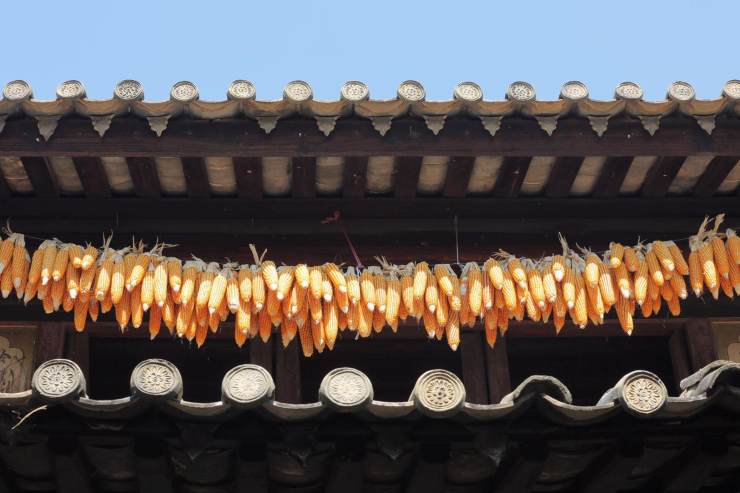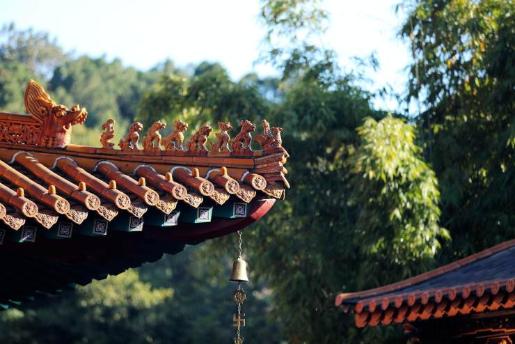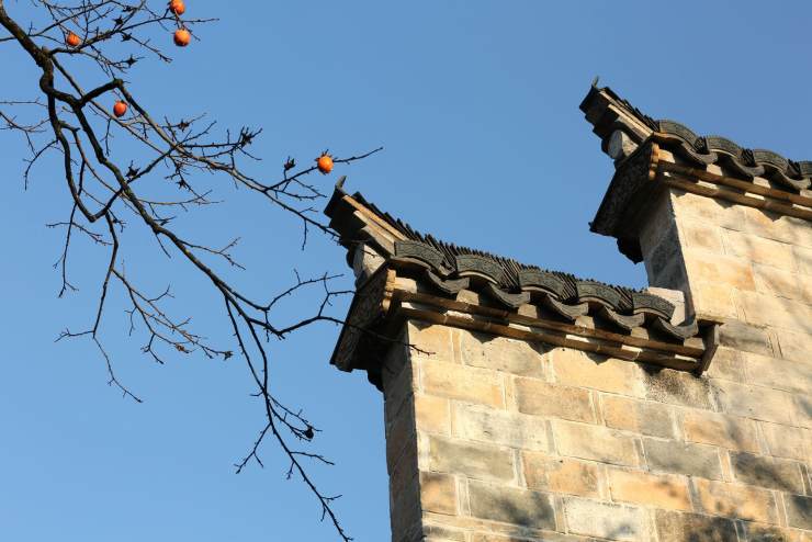 屋脊獸飾的總稱吻獸,吻獸跟挑角多彩當(dāng)屬寺廟祠堂建筑上,挑角又名翅角、撓角。平遙古城深藏著珍稀的人物驅(qū)獸屋脊圖。昆明圓通寺屋頂正中的寶塔氣派端正,翅角飛禽走獸象是在排隊(duì)觀日出。山東徐福家鄉(xiāng)紀(jì)念性建筑物,徐公祠大殿翅角獸伸著脖子像在嗅盛開的櫻花。徽州官宅屋頂?shù)镊梓腼@示著此處宅院與民宅不同。塔川柿子熟了遲遲不愿離開枝頭,膩著相處多日的翅角竊竊私語。古城臨安天君廟的挑角,向著無暇天空笑靨如花。