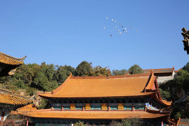 琉璃瓦身段尊貴,現(xiàn)身于帝王天家、寺廟。皇城相府護(hù)城墻一角的琉璃瓦亭,歷經(jīng)百年雨霜磨礪依然閃耀康熙帝賜給股肱之臣的無上榮光。彩云之南澄碧天空下一群白鴿飛過黃色琉璃瓦的屋頂,給莊嚴(yán)的佛堂添了隨和。蜚聲四海的晉祠藍(lán)灰相間的大殿頂,冷靜中素麗。
