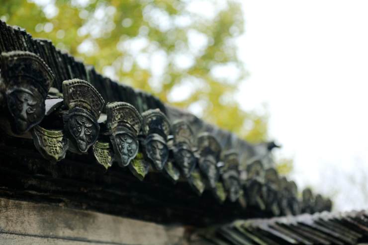 單說用量多寡,小青瓦當(dāng)屬老大,她還有個(gè)美麗的別名蝴蝶瓦,又名陰陽瓦,廣泛應(yīng)用在屋宇建筑上,江南江北身影重重。江西婺源人家屋頂黛色板瓦,因著大塊艷麗秋色,華美跳躍。六和塔下房屋間逸出一叢芭蕉,不知是瓦因著芭蕉清新,還是芭蕉因著青瓦含蓄。秋至皖南,人家的房頂落葉覆蓋,雨過天晴水汽縈繞恍惚出水墨顏色。靜升王家單色青瓦覆頂,不著異色卻整整當(dāng)?shù)闷鹈耖g故宮名頭。甪直古鎮(zhèn)青磚小瓦馬頭墻,隱含著書香門第的典雅。河街并行的婉約水鄉(xiāng),那屋瓦也文靜靈秀款款深情。年幼時(shí)膠東老家的青黛小瓦,比著當(dāng)下張揚(yáng)的大紅瓦多了古遠(yuǎn)深邃跟幽謐。