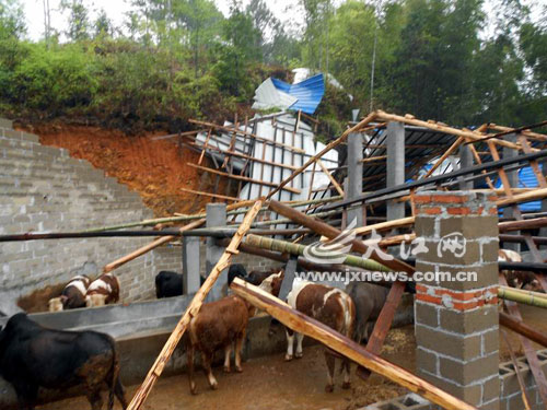 幾乎家家戶戶都積滿了水,一些村民在用水桶盛水往外倒。而且,整個村莊的每一條巷道里,都鋪滿了破碎的瓦片,一片狼藉,滿目瓦礫。