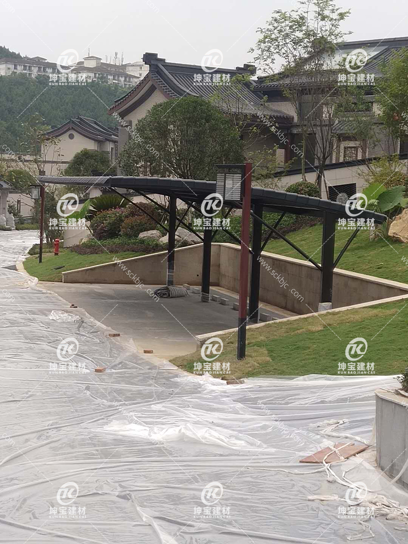 - 樹脂小青瓦停車棚人字坡安裝效果圖