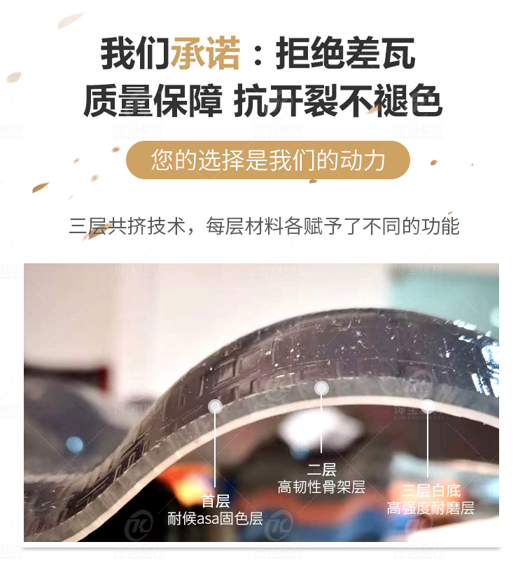 坤寶白底三層樹脂瓦是坤寶新出款式!再此之前結(jié)合傳統(tǒng)的樹脂瓦工藝進(jìn)行了加工改良,肯定有客戶會(huì)疑問: