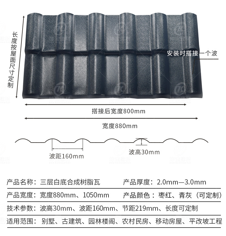 三層白底合成樹脂瓦_(dá)3.0mm廠家直銷_高性價(jià)比