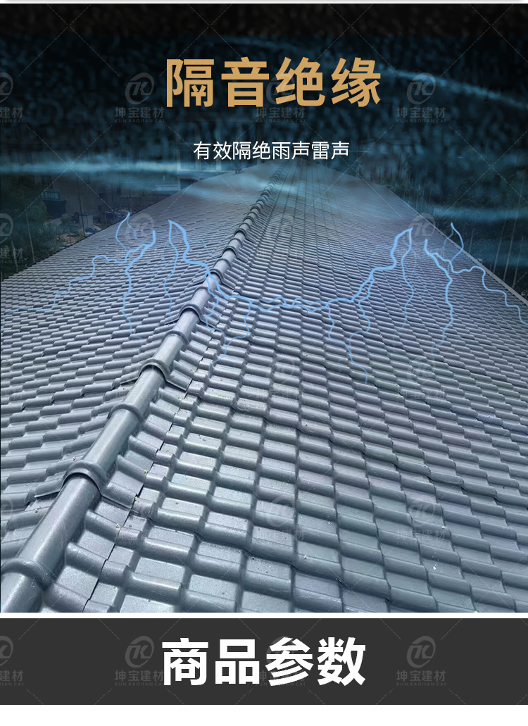 樹脂瓦是材料創(chuàng)新的得意成果,是運用高新化學(xué)化工技術(shù)研制而成的建筑材料,是傳統(tǒng)屋面瓦替代品。樹脂瓦具有重量輕、強度大、防水防潮、防腐阻燃、隔音隔熱等多種優(yōu)良特性,成為我國推行節(jié)能不可缺少的建筑材料。